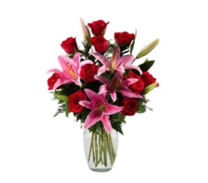 Lindo florero que contiene 12 rosas 6 lirios florero