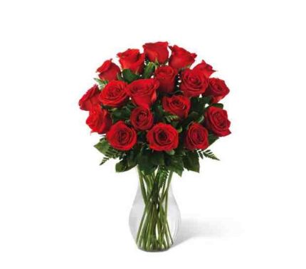 Hermoso florero que contiene 24 rosas rusco florero